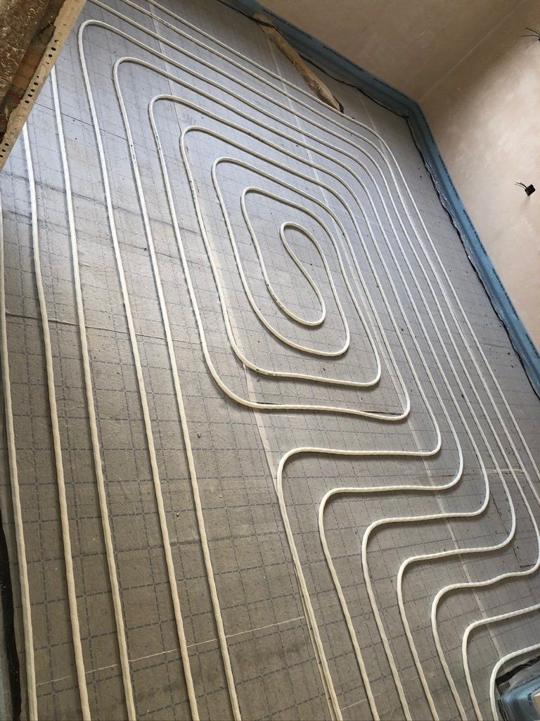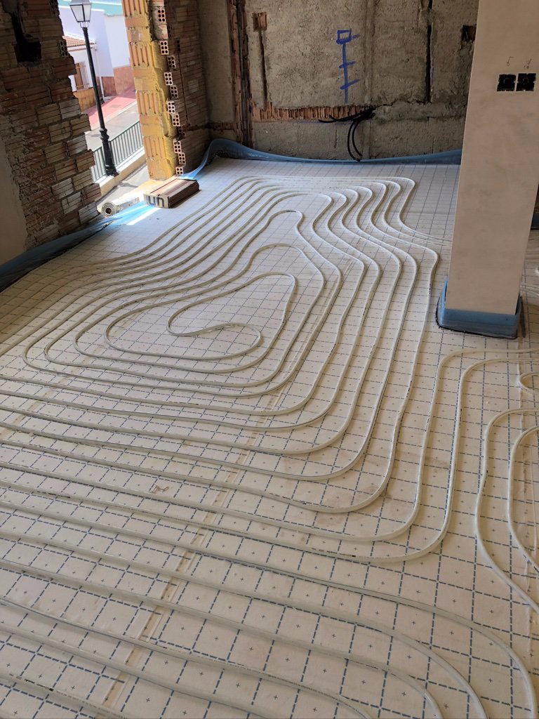 El suelo radiante consiste en una red de tuberías que discurren por el interior del suelo de cada estancia, a través de ellas circulará agua caliente, aumentando de esta forma la temperatura del suelo y calefactándolas.